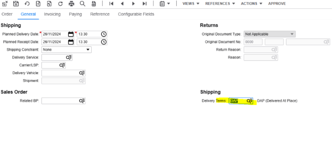 SXE - these are overseas orders which Tanks Direct oversee with just a few steps. When you open the Sales Order click 'General' and then change the delivery terms (as highlighted below) to 'DAP', then approve the order and normal and follow the same process as an SDD order (send to Docman etc)